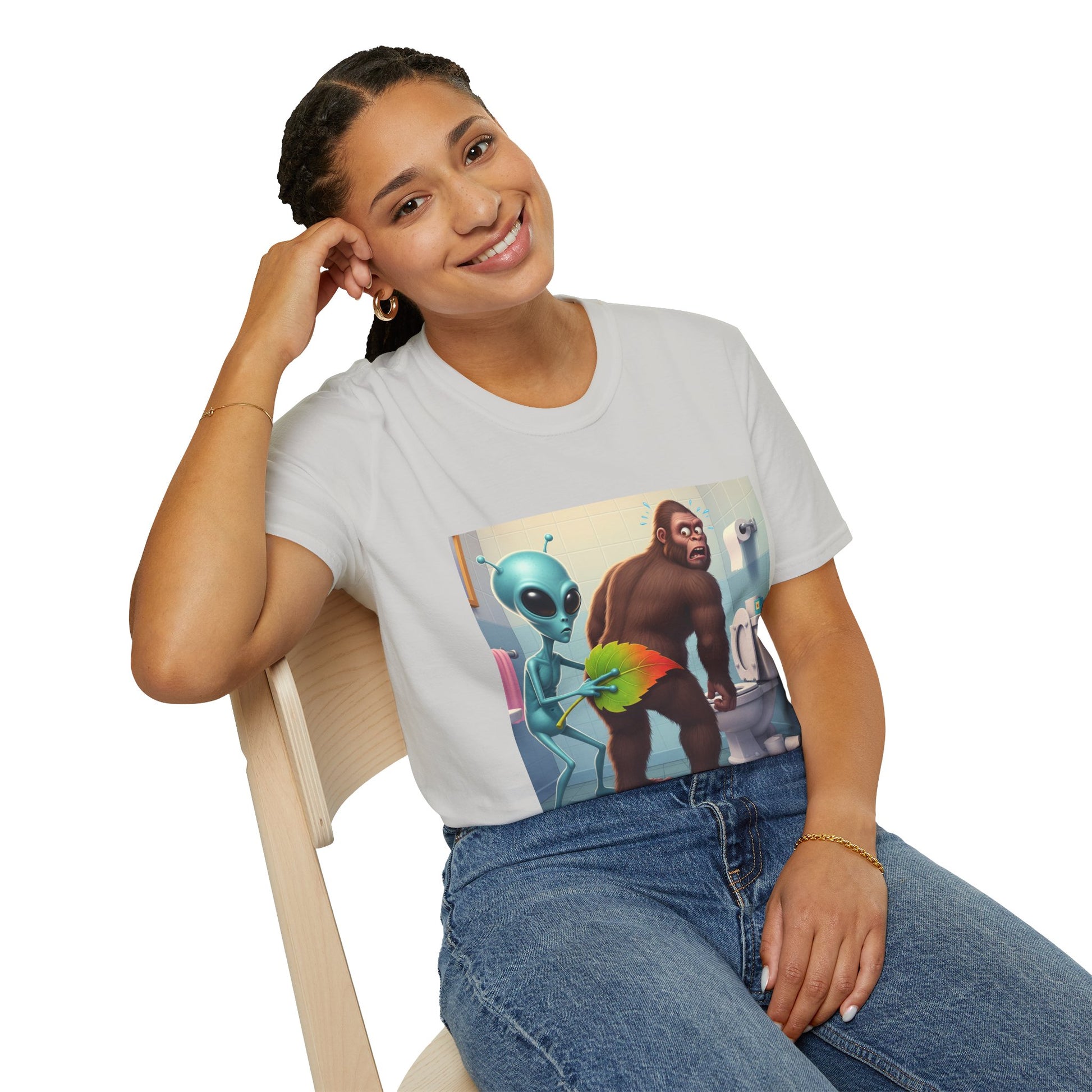 Funny Alien Bigfoot T-Shirt, Unisex Graphic Tee, Humor Shirt, Quirky Gift for Friends, Casual Everyday Wear, Perfect for Parties
